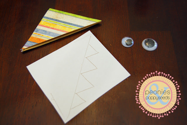 See? See how I drew my monster teeth? You'll want to cut that so it will fit inside your triangle, so cut a little bit inside the line you traced for your triangle. And also, pick out your google eyes and glue those on too.