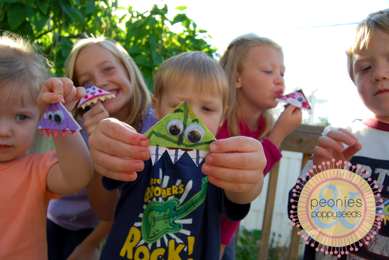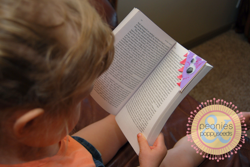And your 3 year old won't have to worry about losing her place when she's reading Jane Austen novels, because her monster bookmark will be eating her page and marking her spot. (All you have to do is slide the monster over the page corner, which is why I told you not to glue all the flaps together.)