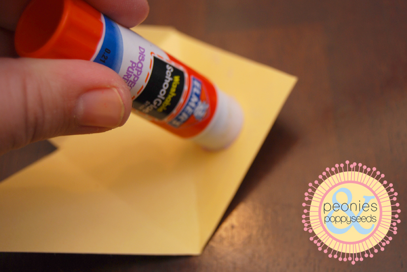Then you'll want to glue the large flap to the inside and glue the smaller flaps to eachother, but -THIS IS IMPORTANT- don't glue your smaller flaps to your big flap because you want to keep it open inside the monster's "mouth" (otherwise it won't be able to "eat" your pages, it will just be a useless triangle).