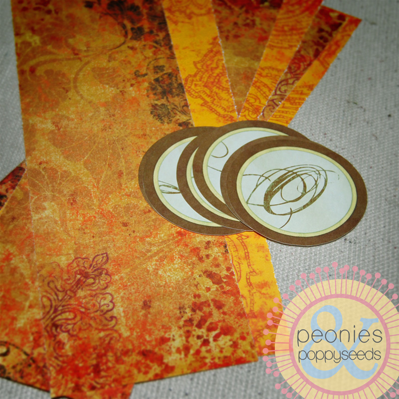 Step 3: Cut out the pieces on the printable, and slice a couple pieces of scrapbook paper into six 3.75x12" strips.
