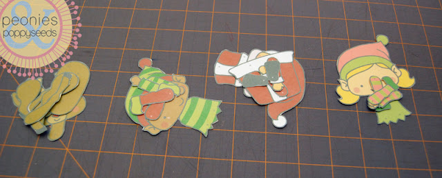 Now you're going to cut them out for realsies. Except keep the different parts in organized piles, because what if you get confused and attach the wrong legs to the wrong bodies and you end up with elves that have reindeer legs? That would be bad.