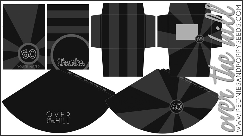 Everyone needs a good "Over the Hill" party. These invitation and thank you cards, envelopes, and party hats are just the beginning of this party pack. And you can download these for a 30th, 40th, or 50th birthday party.