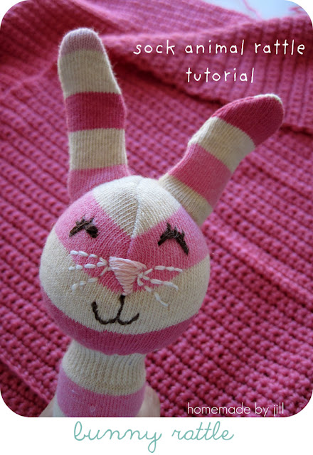 | http://homemadebyjill.blogspot.com/2010/05/sock-animal-rattle-tutorial.html |