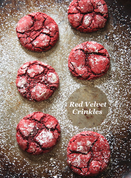These red velvet crinkle cookies are making me all slobbery. I'm just going to imagine how good they taste. It's kind of hard because my imagination is really good at visualizing food and I want them for real.