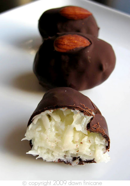 Coconut truffles that taste like Almond Joy candybars = I think I might die. I love coconut desserts. Ok, fine, I love ALL desserts. I don't see this diet lasting very long....