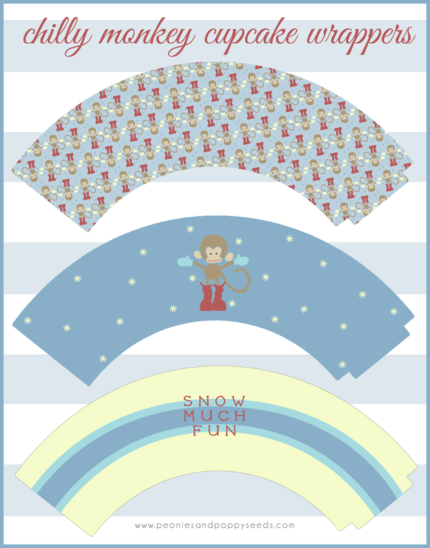 We like monkeys at this house. And we figure that monkeys probably like snow. They do, right....? So to celebrate monkeys and snow all at once here is a Winter Monkey Cupcake Wrappers Printable: