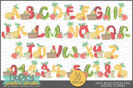 Cute Fruit Alphabet Clipart