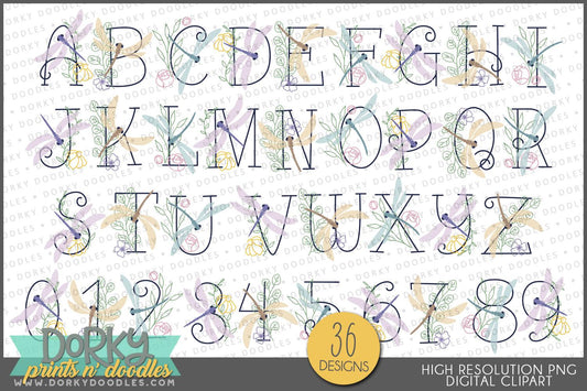 Elegant Dragonfly Alphabet Clipart