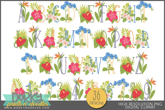 Tropical Flower Alphabet Clipart