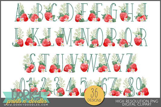 Watercolor Strawberry Alphabet Clipart