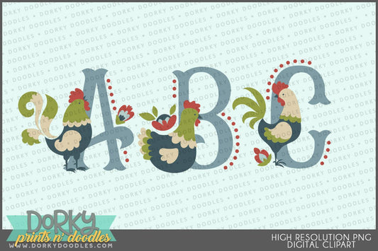 Folkart Chicken Alphabet Clipart