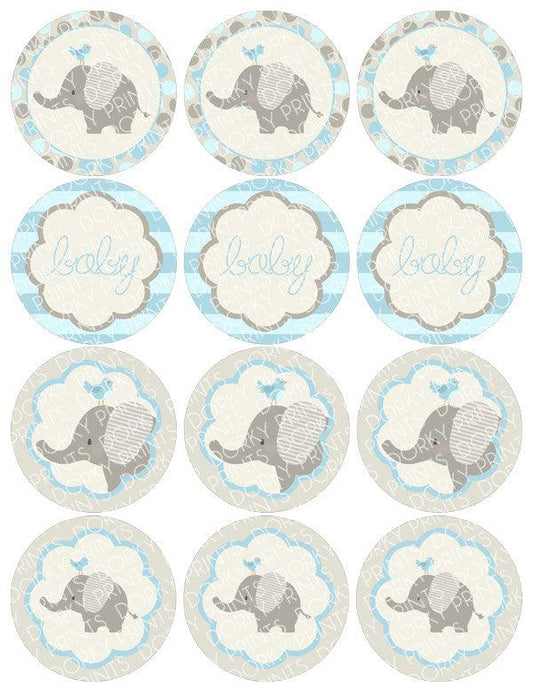 Blue Elephant Mason Jar Lid Labels Baby Shower Printables