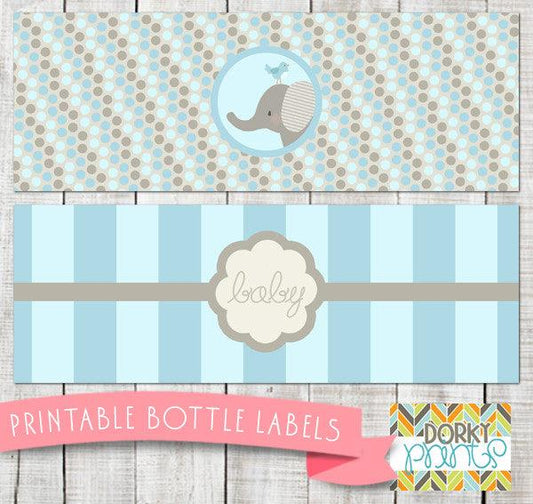 Blue Elephant Water Bottle Labels Baby Shower Printables