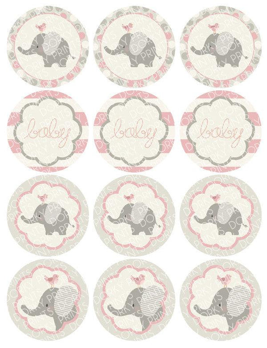 Pink Elephant Mason Jar Lids Baby Shower Printables