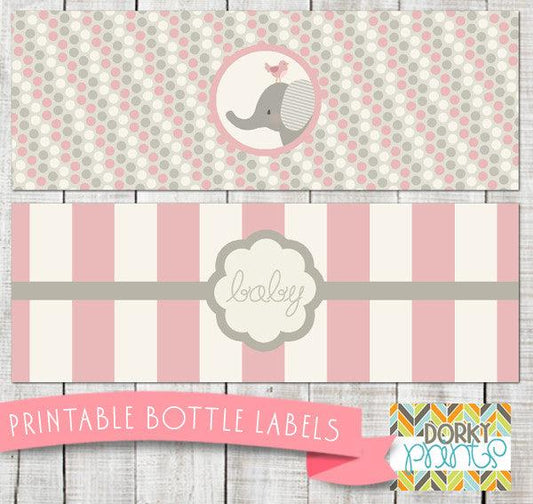 Pink Elephant Water Bottle Labels Baby Shower Printables