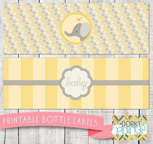Yellow Elephant Water Bottle Labels Baby Shower Printables