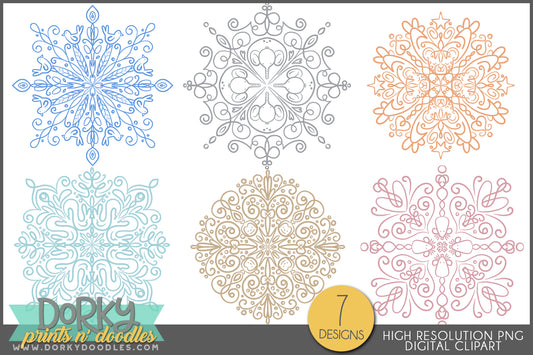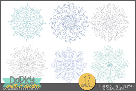 Elegant Hand Drawn Snowflakes - Christmas Clipart