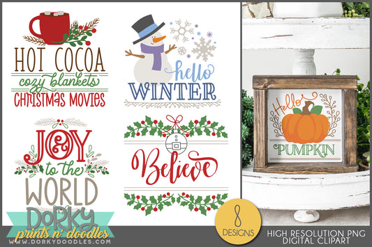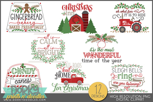 Country Holiday Farm Embellishment Designs - Rustic Christmas Clipart