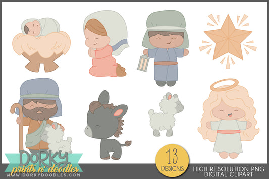 Cute Nativity Graphics - Whimsical Christmas Clipart