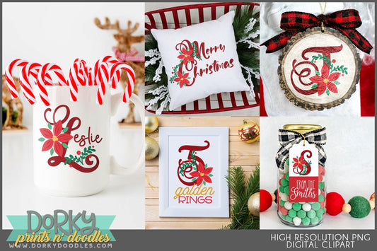Christmas Poinsettia Alphabet Clipart