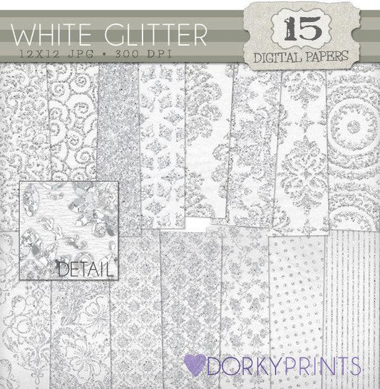 White Glitter Digital Paper Pack