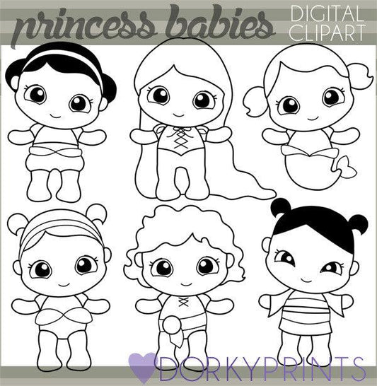 Black Line Baby Princess Character Clipart