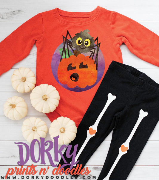 Spider on Pumpkin Watercolor PNG