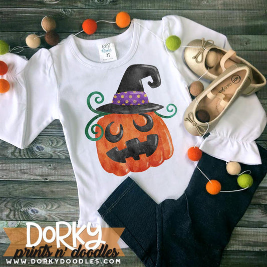 Witch Pumpkin Halloween Watercolor PNG