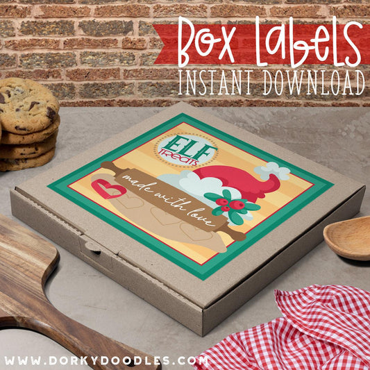 Elf Treats Christmas Labels for Mini Pizza Box and Gifts - Printables