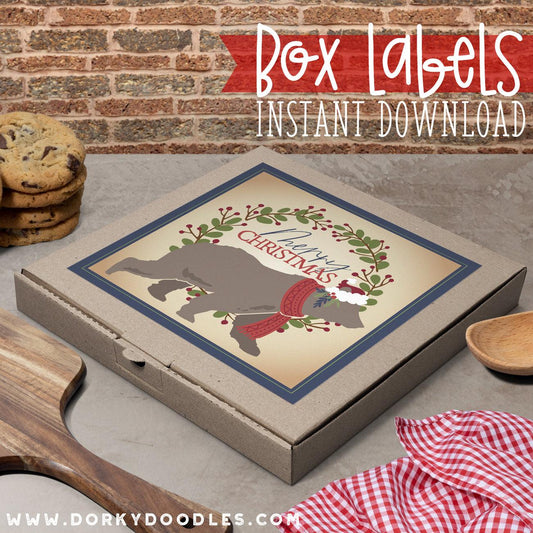 Farmhouse Christmas Bear Labels for Mini Pizza Box and Gifts - Printables
