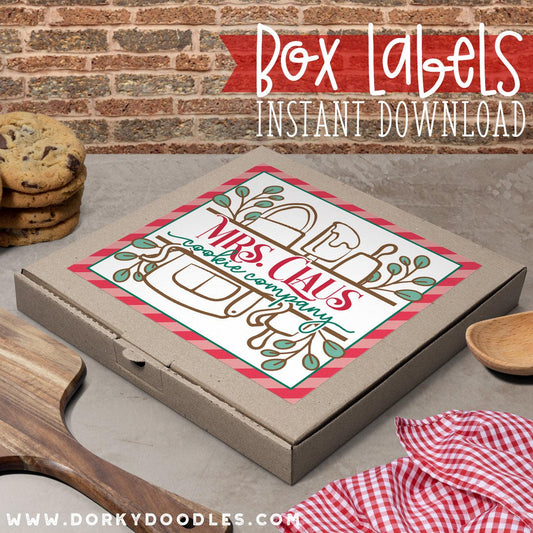 Mrs. Claus Christmas Cookie Labels for Mini Pizza Box and Gifts - Printables