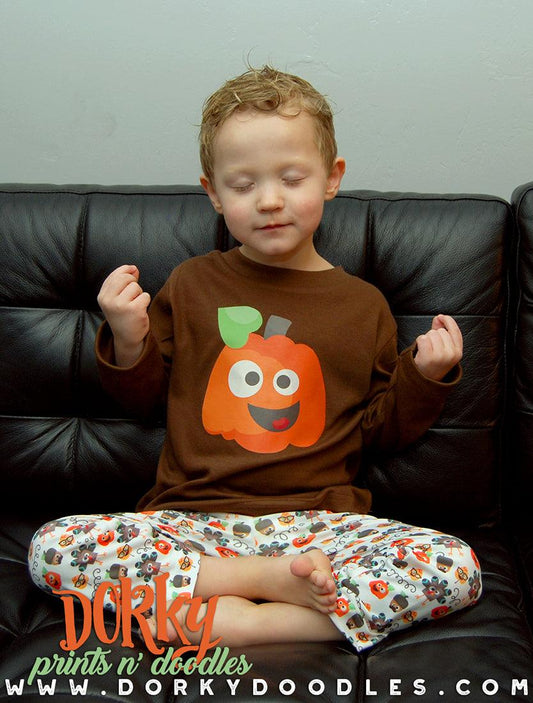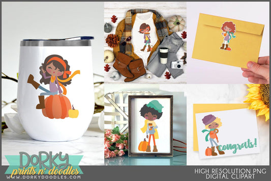 Stick Kids Black and White Fall and Thanksgiving Clipart