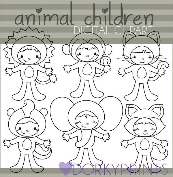 These cute kids in animal costumes look fabulous in scrapbooks, party invitations, and holiday decor! You will get 6 Digital Blackline Clip Art images in high resolution PNG format (they come as a ZIP file that you can download instantly once payment has cleared).