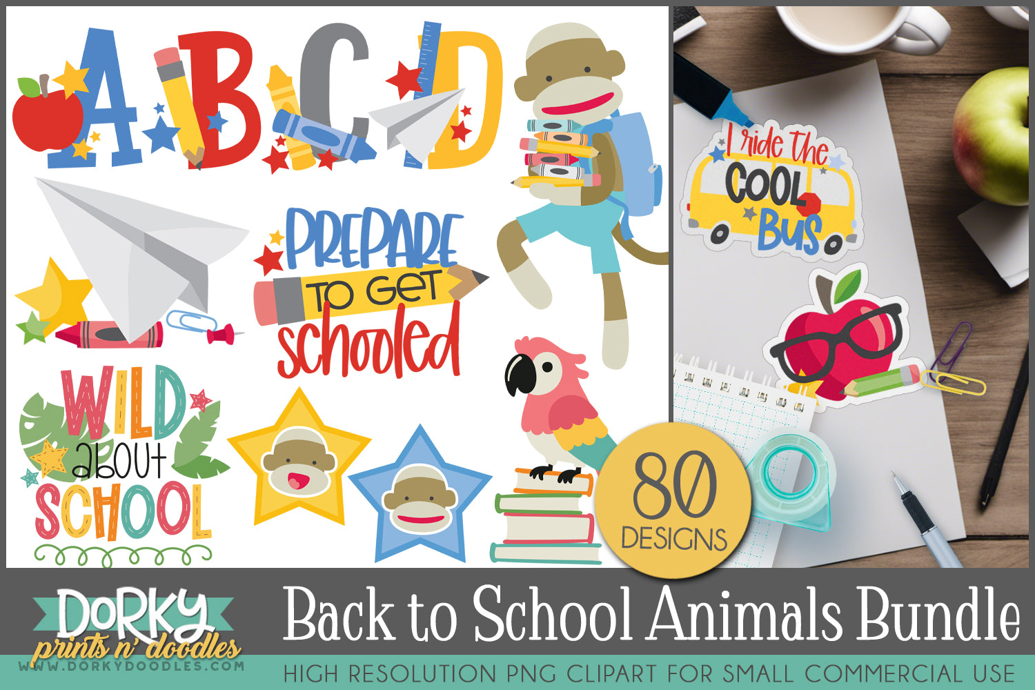 This 80-image Back to School Animals Clipart Bundle includes a bright school alphabet, silly back-to-school sayings, classroom elements (apples, pencils, paper airplanes), a fun sock monkey classroom set, and “Wild About School” sayings for Pre-K through 5th grade featuring jungle animals. Ideal for teacher printables, bulletin boards, stickers, labels, and sublimation projects. All PNGs have transparent backgrounds.