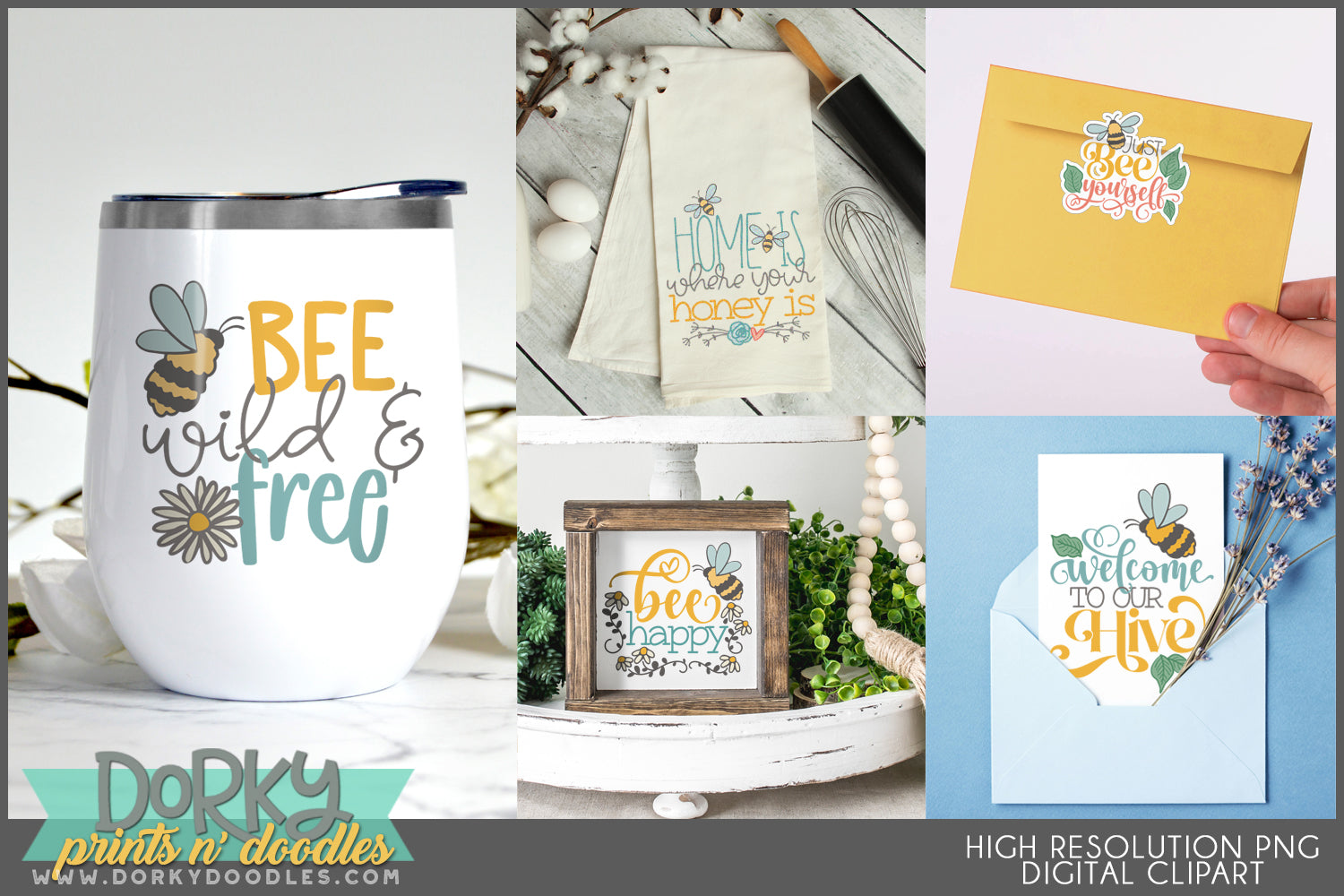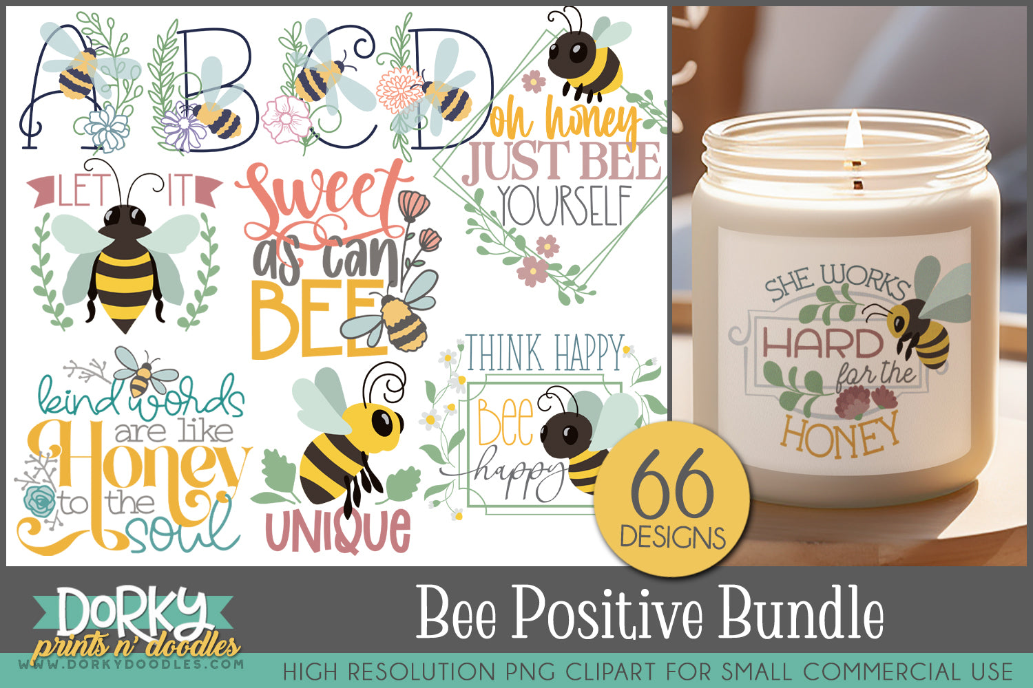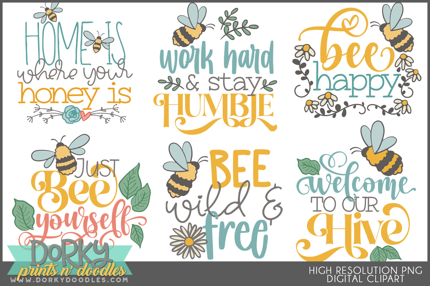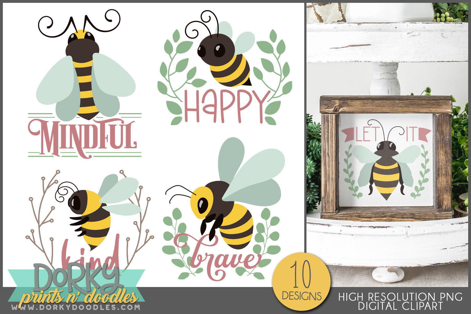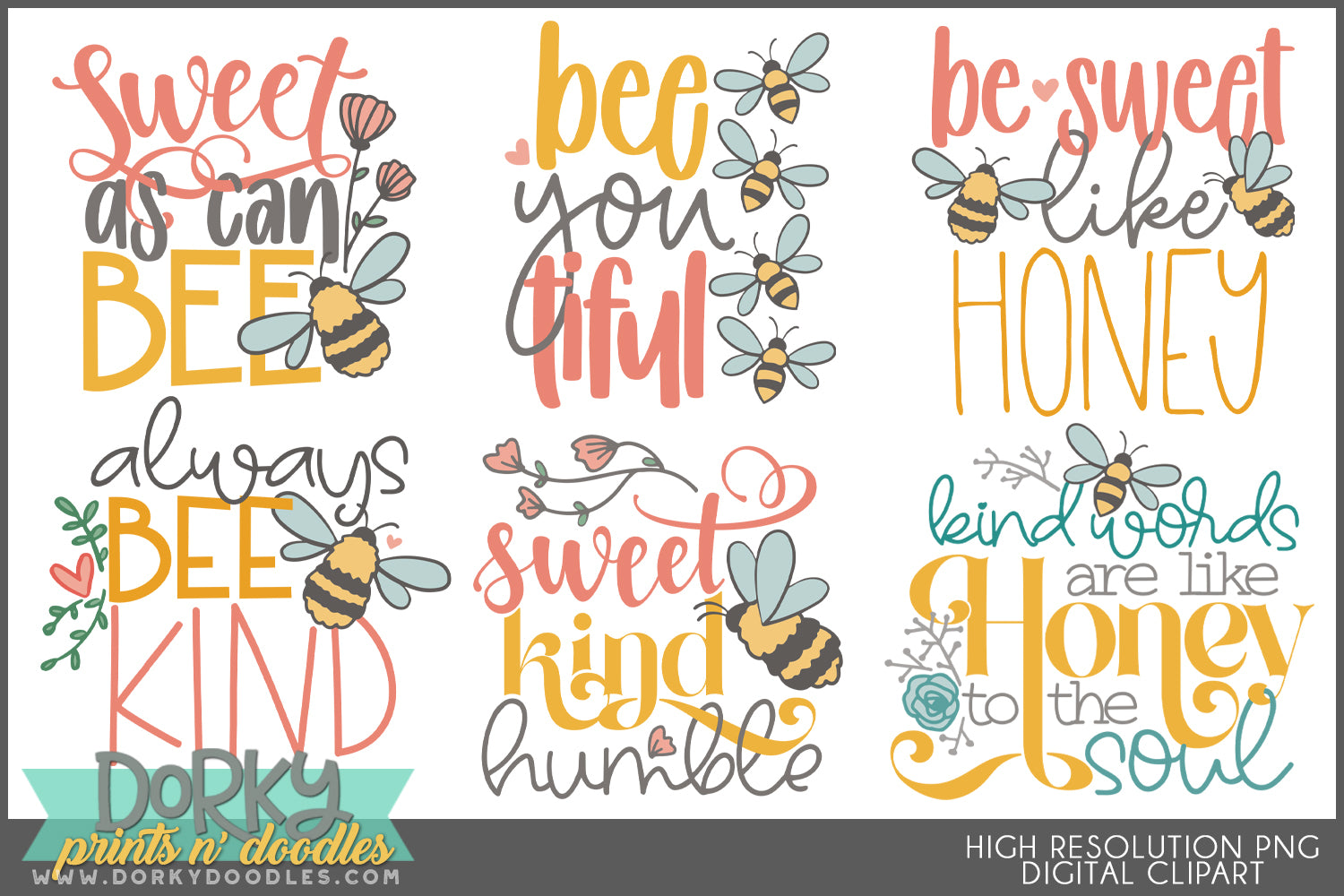 Bee Positive Inspirational Clipart Bundle