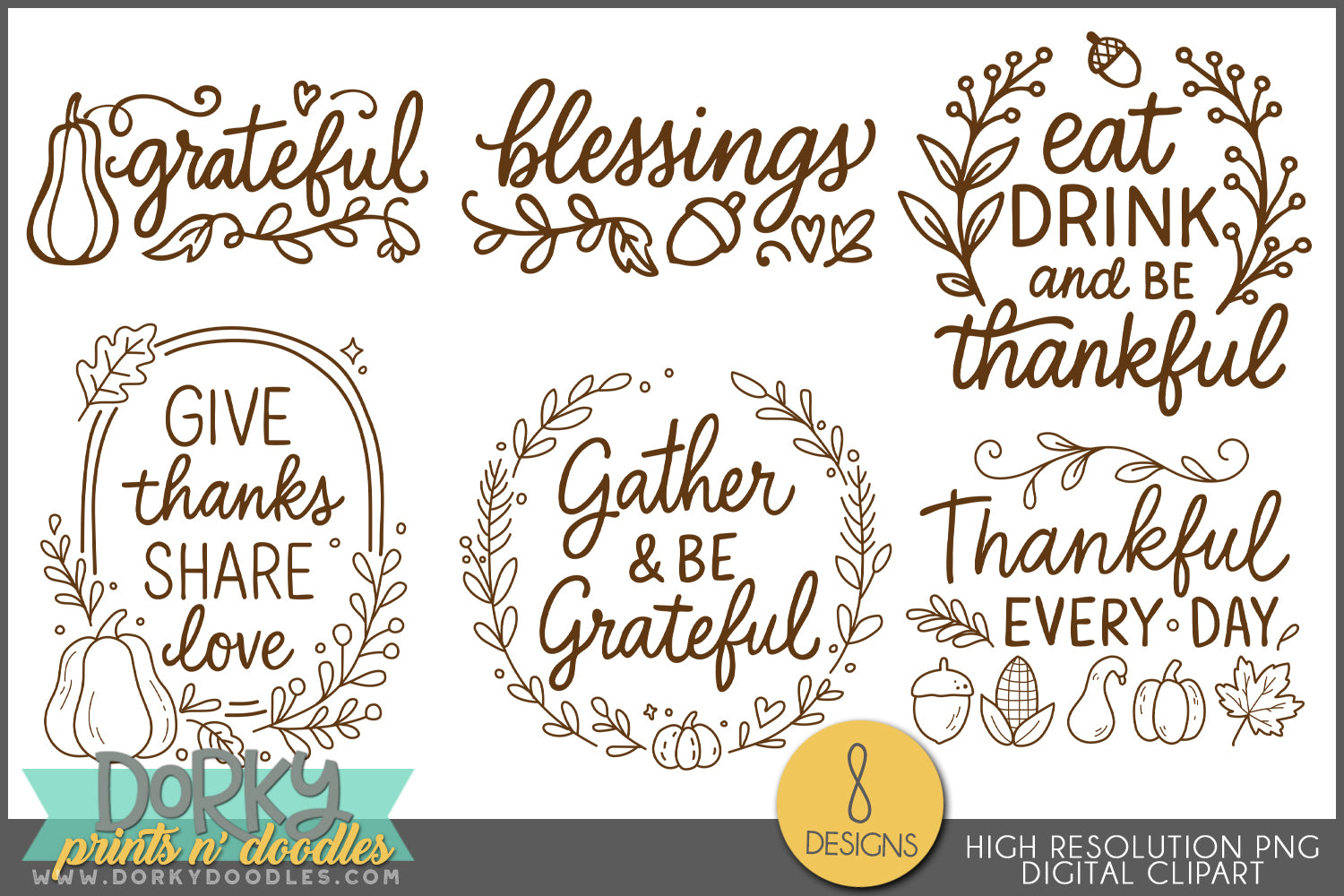 Celebrate the season of gratitude with this Thanksgiving sayings clipart set! You’ll receive 8 unique word art designs in a solid brown color, each featuring simple hand-drawn accents for a rustic, timeless look.