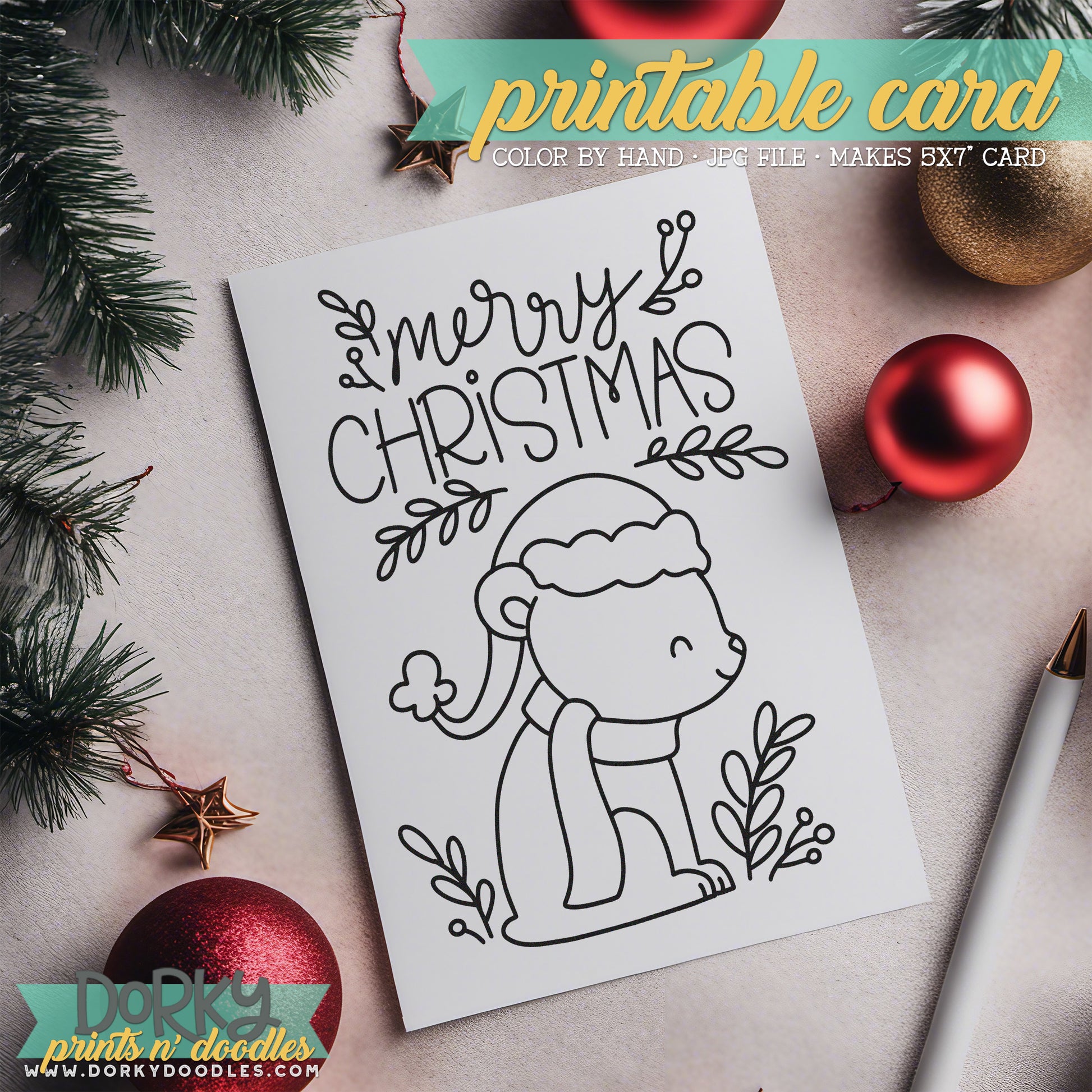 Christmas Bear - Hand Drawn Christmas Coloring Cards - Printable Holiday Greetings - Instant Download