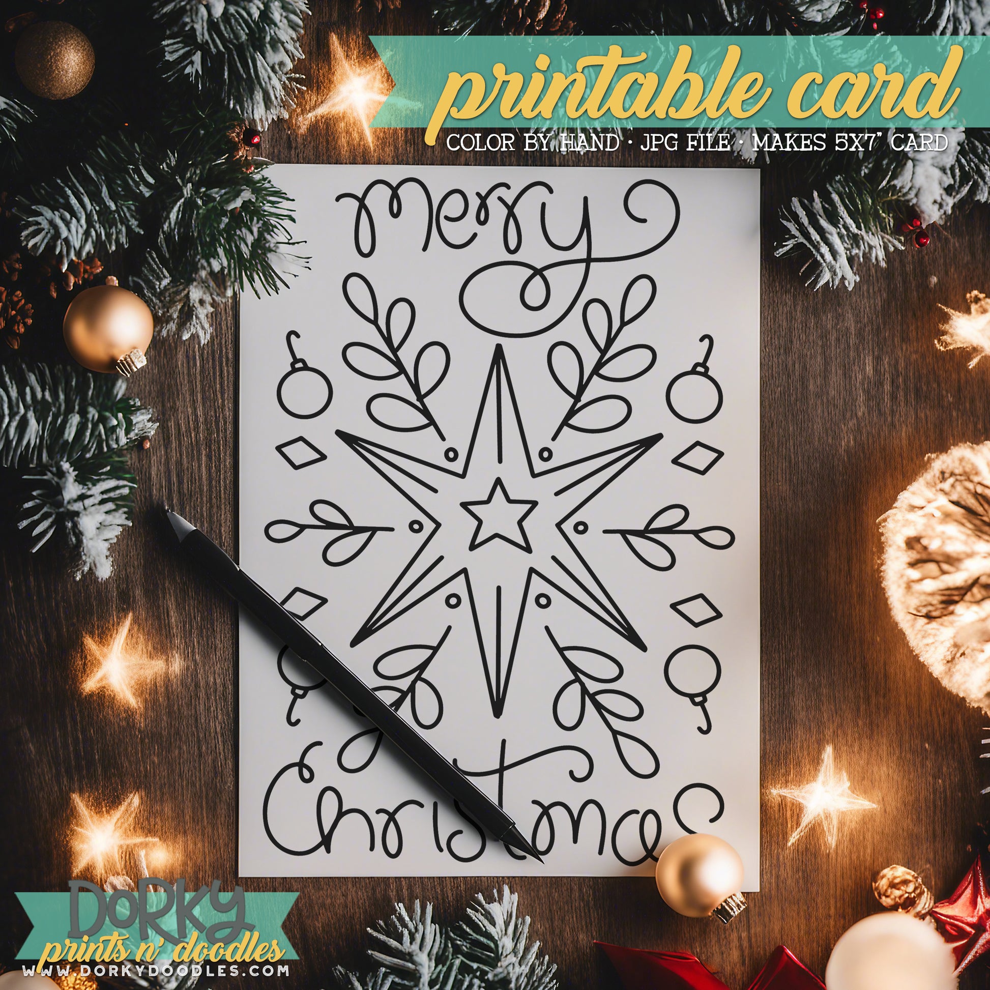 Christmas Star - Hand Drawn Christmas Coloring Cards - Printable Holiday Greetings - Instant Download