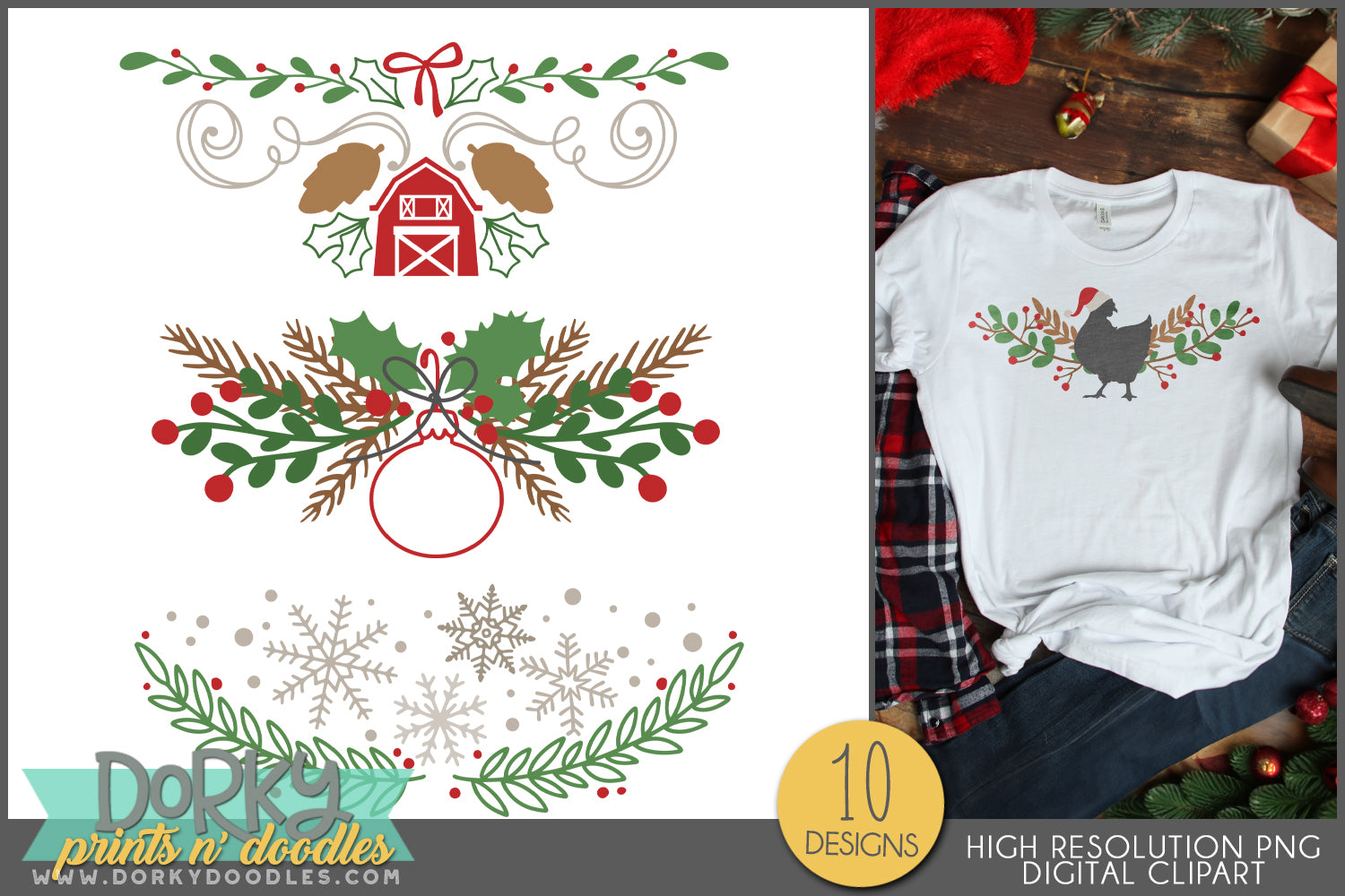 Country Holiday Farm Embellishment Designs - Rustic Christmas Clipart