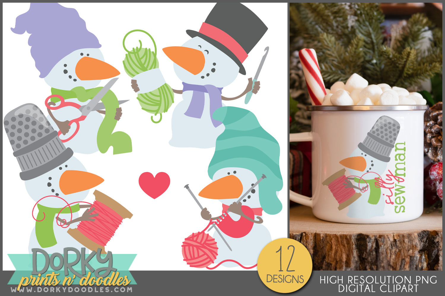 These cute craft loving snowman illustrations are perfect for your stickers, school projects, sublimation designs, sugar cookies, home decor, fabric, and more! Our high quality digital art makes any project look whimsical and fun for kids and adults!