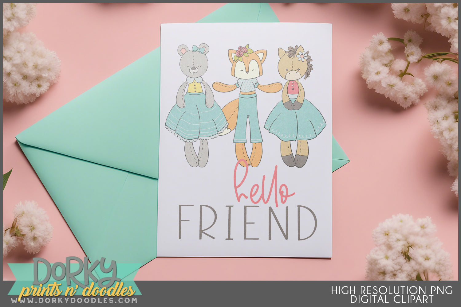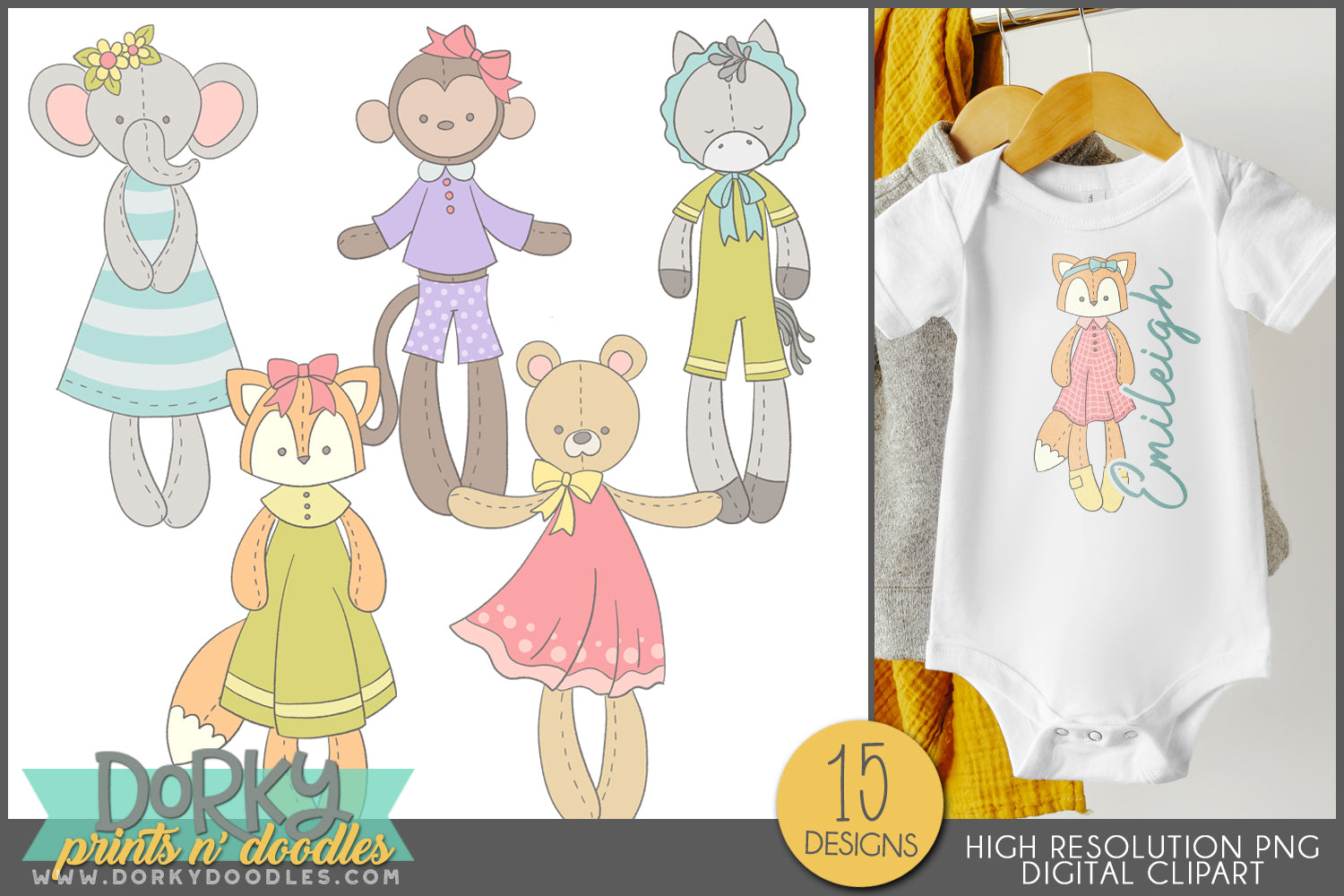 These cute animal doll-like designs are perfect for your stickers, school projects, sublimation designs, sugar cookies, home decor, fabric, and more! Our high quality digital art makes any project look whimsical and fun for kids and adults!