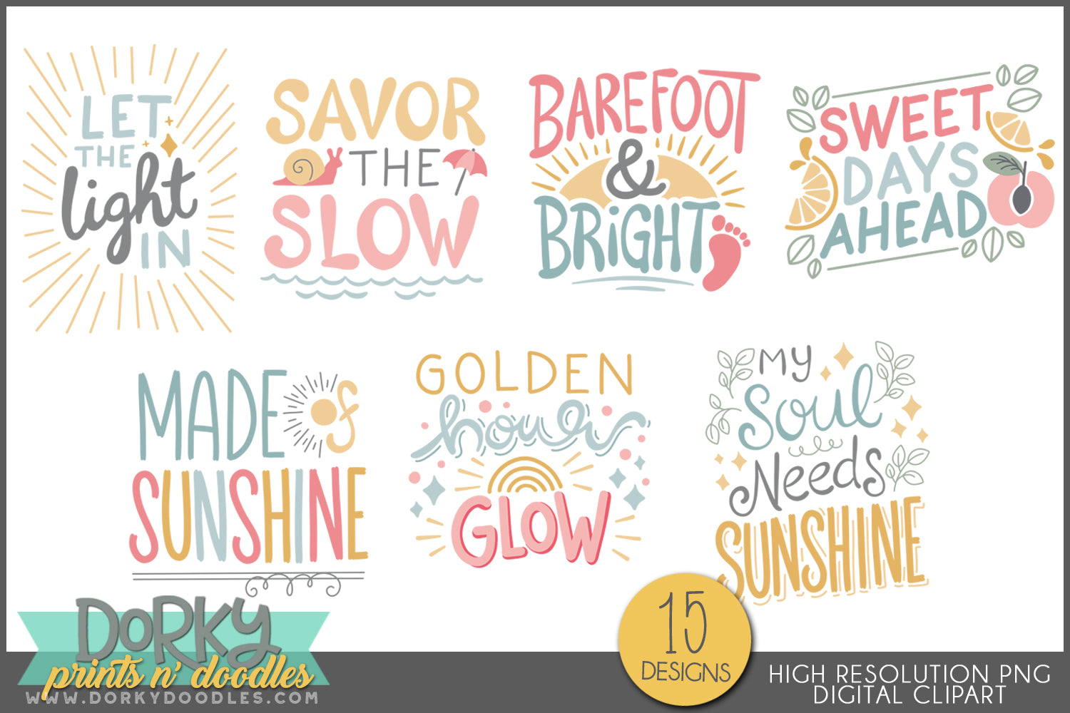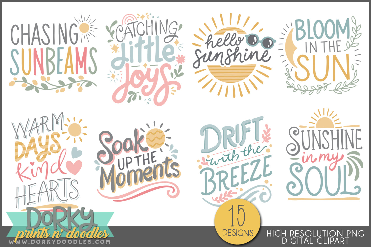 These cute and fun sunshine inspired illustrations are perfect for your stickers, school projects, sublimation designs, sugar cookies, home decor, fabric, and more! Our high quality digital art makes any project look whimsical and fun for kids and adults!