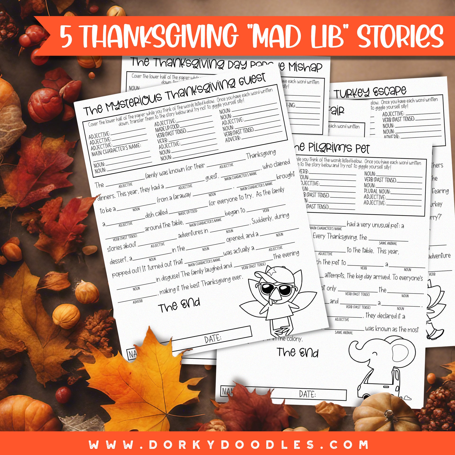 Five Thanksgiving Mad Lib Style Stories for Kids - Fun Learning Printables