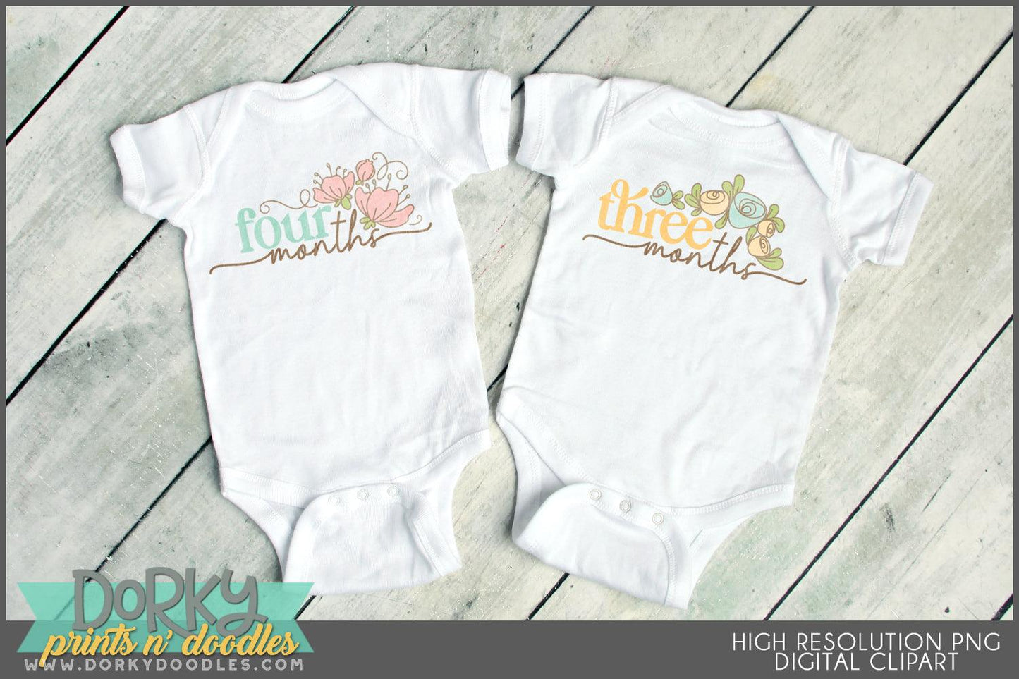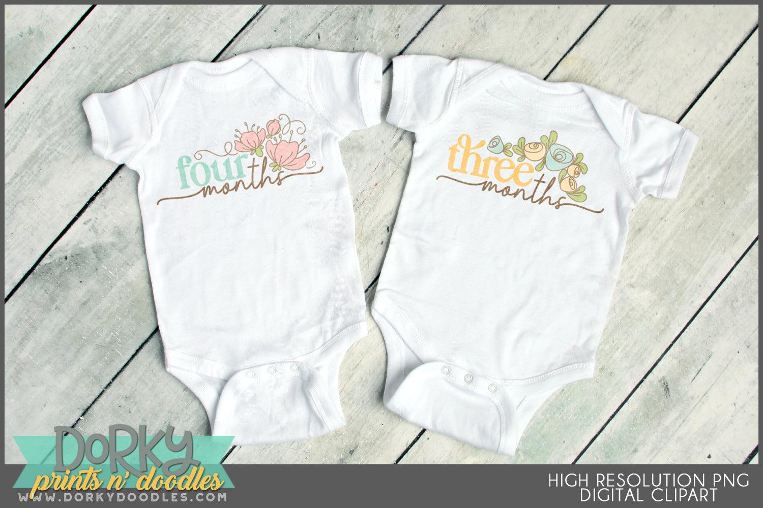 These pretty flower baby month milestone clipart images look fabulous on cards, in scrapbooks, party invitations, planner stickers, sublimation projects, and decor! You will get 12 Digital Clip Art images in high resolution PNG format (they come as a ZIP file that you can download instantly once payment has cleared).