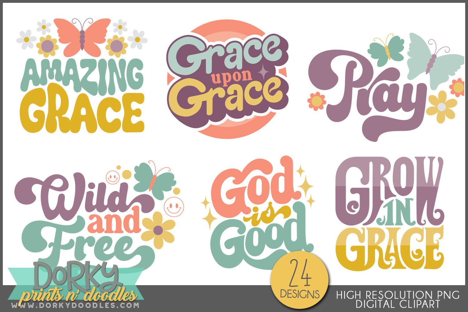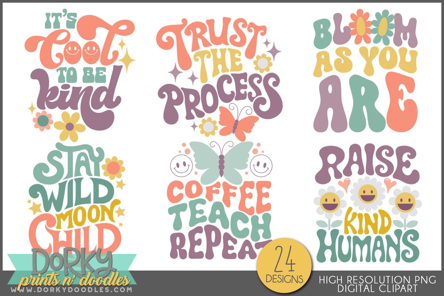 These funky and fun wordart sayings will look fabulous for your sublimation projects, on stickers, in scrapbooks, for party invitations, and for holiday decor! You will get 24 Digital Clip Art images in high resolution PNG format (they come as a ZIP file that you can download instantly once payment has cleared).