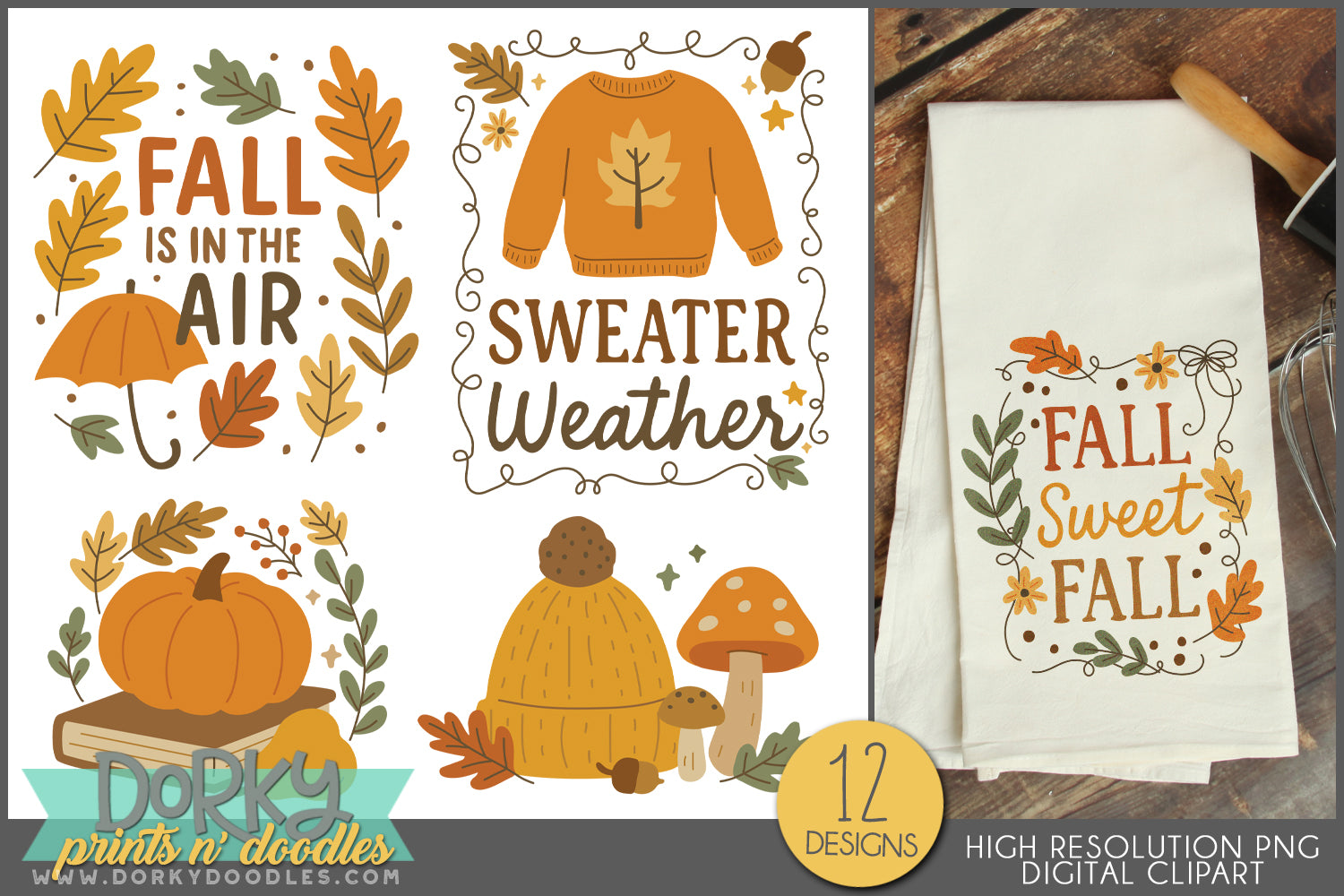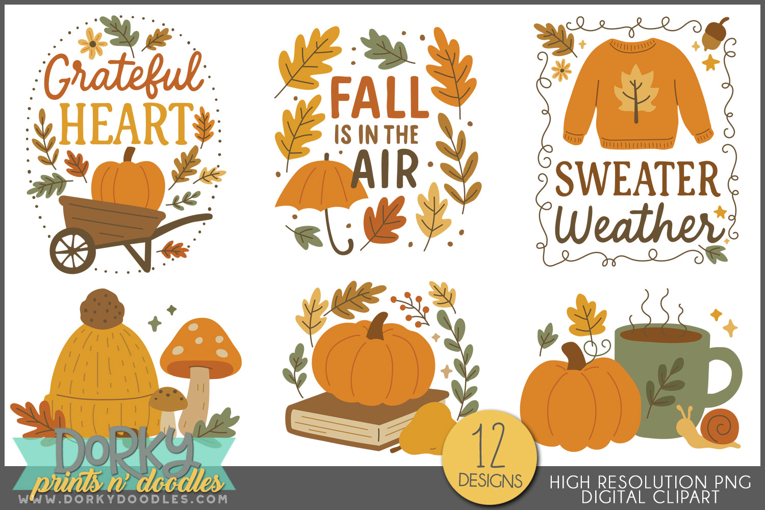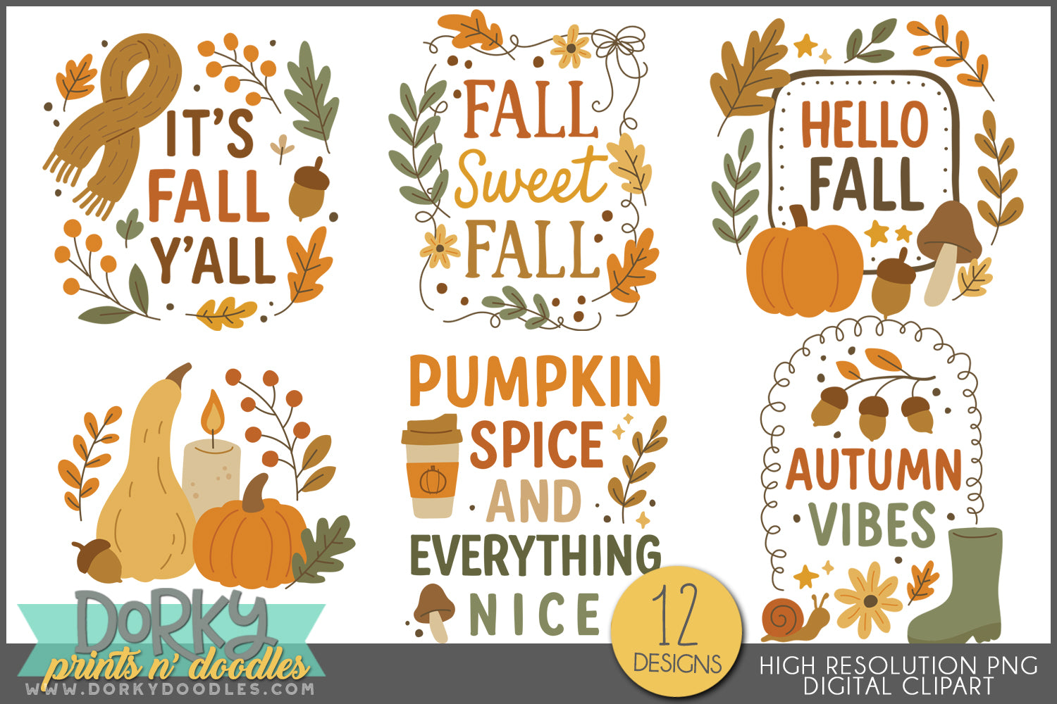 Bring cozy fall vibes into your creative projects with this set of 12 Fall & Thanksgiving sayings clipart images. Each design is created in muted autumn colors, perfect for a warm seasonal look.