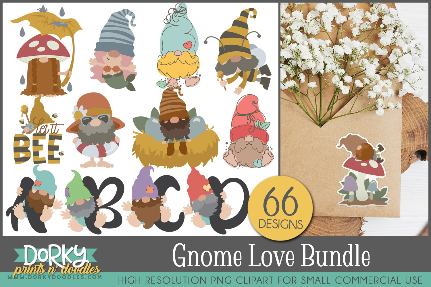 This 66-image Gnome Love Clipart Bundle includes bee gnomes, forest gnomes, colorful sketchy gnomes, and humorous gnomes like chefs, mermaids, and Scottish kilts. Perfect for planners, seasonal decor, and whimsical gifts. PNG format with transparent backgrounds.