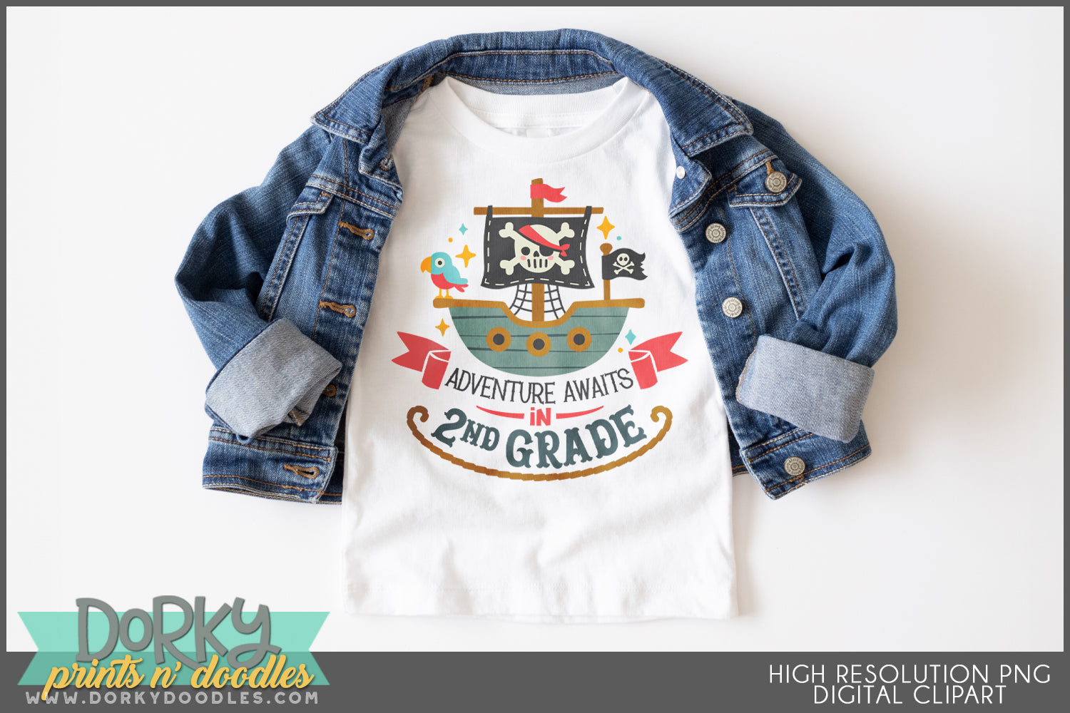 Add an adventurous touch to your back to school projects with our "Adventure Awaits in 1st Grade" clipart! Each grade is covered from preschool to 5th grade, plus you get a matching pirate ship image for matching projects!
