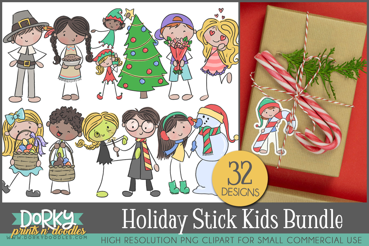 Holiday Stick Kids Clipart Bundle – Christmas, Easter, Halloween, Thanksgiving