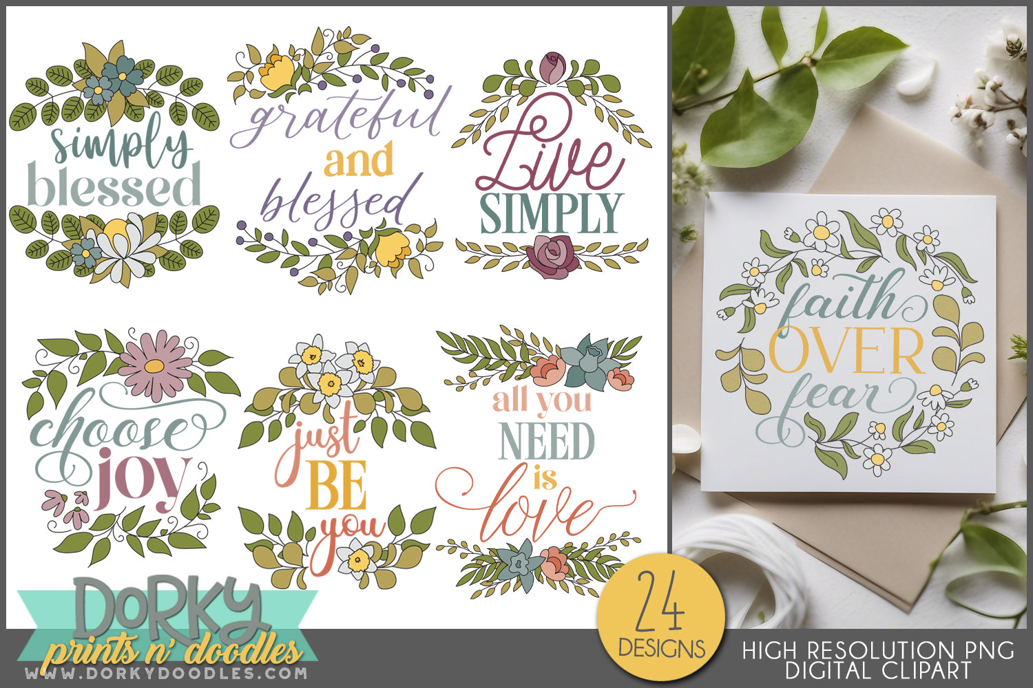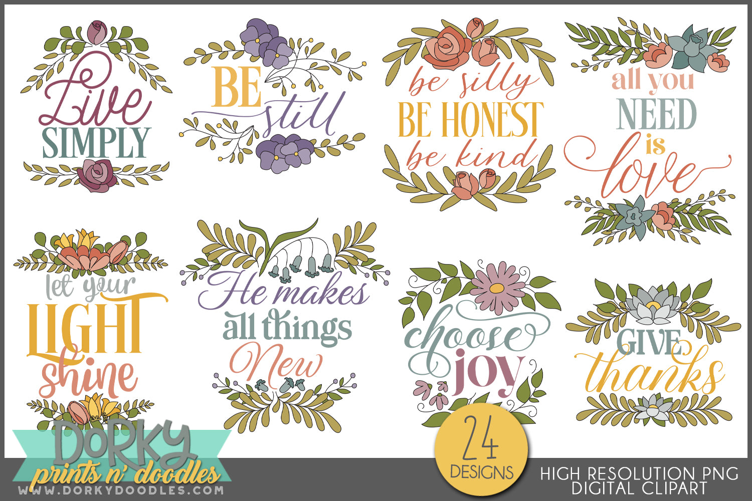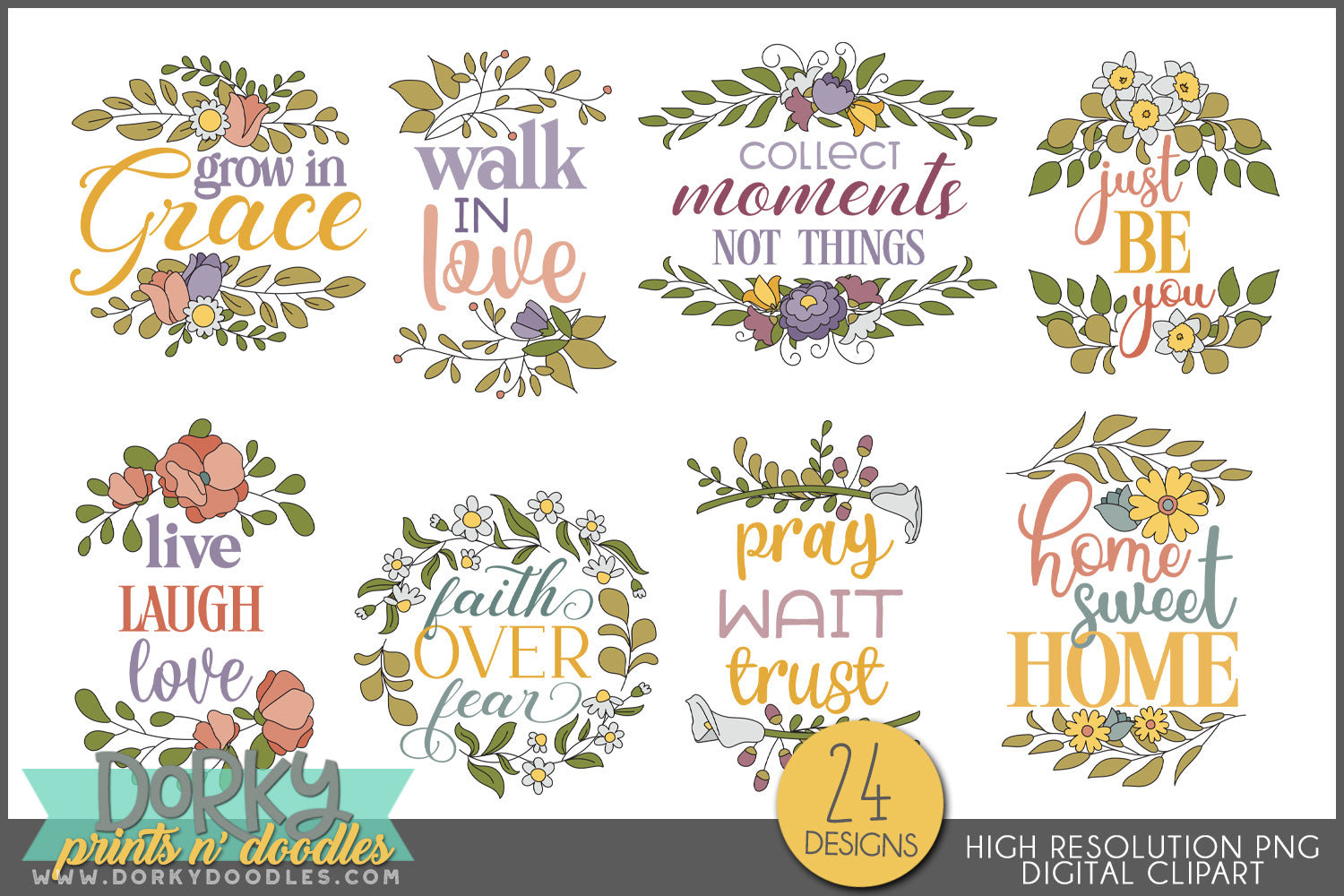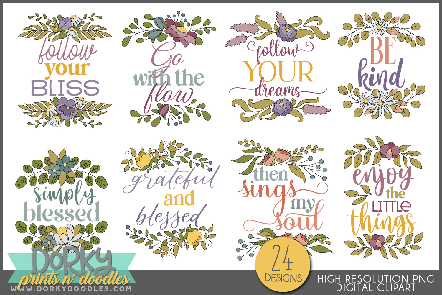 Inspirational Floral Sayings Clipart Bundle